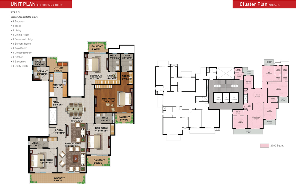 4BR+4T | 2700 Sq. ft. | 1,29,60,000 | View Plan |