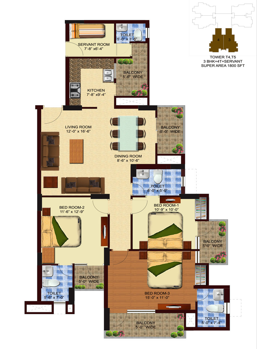 | 3BHK+3Toi+Ser | 1575 Sq-Ft | 6693750 | View Plan |