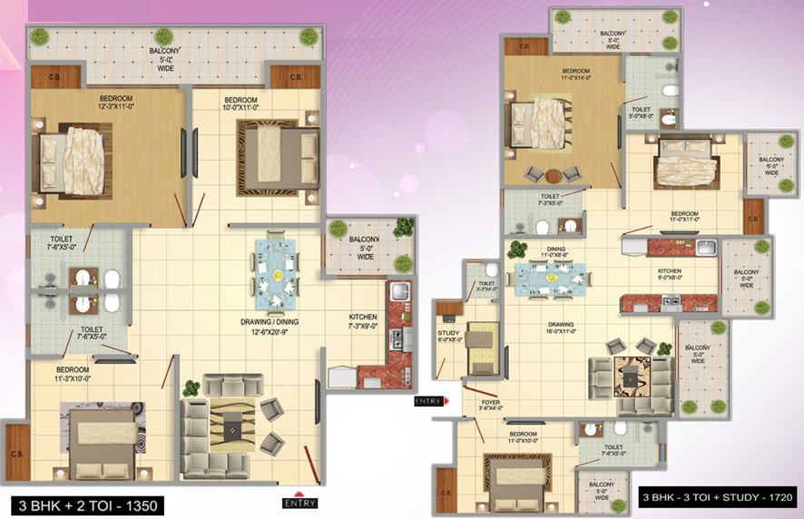 | 3BHK+3Toi+Study | 1720 Sq-Ft | 55,90,000 | View Plan |