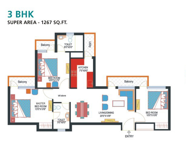3BR+2T | 1267 Sq-Ft | 45,61,200 | View Plan |