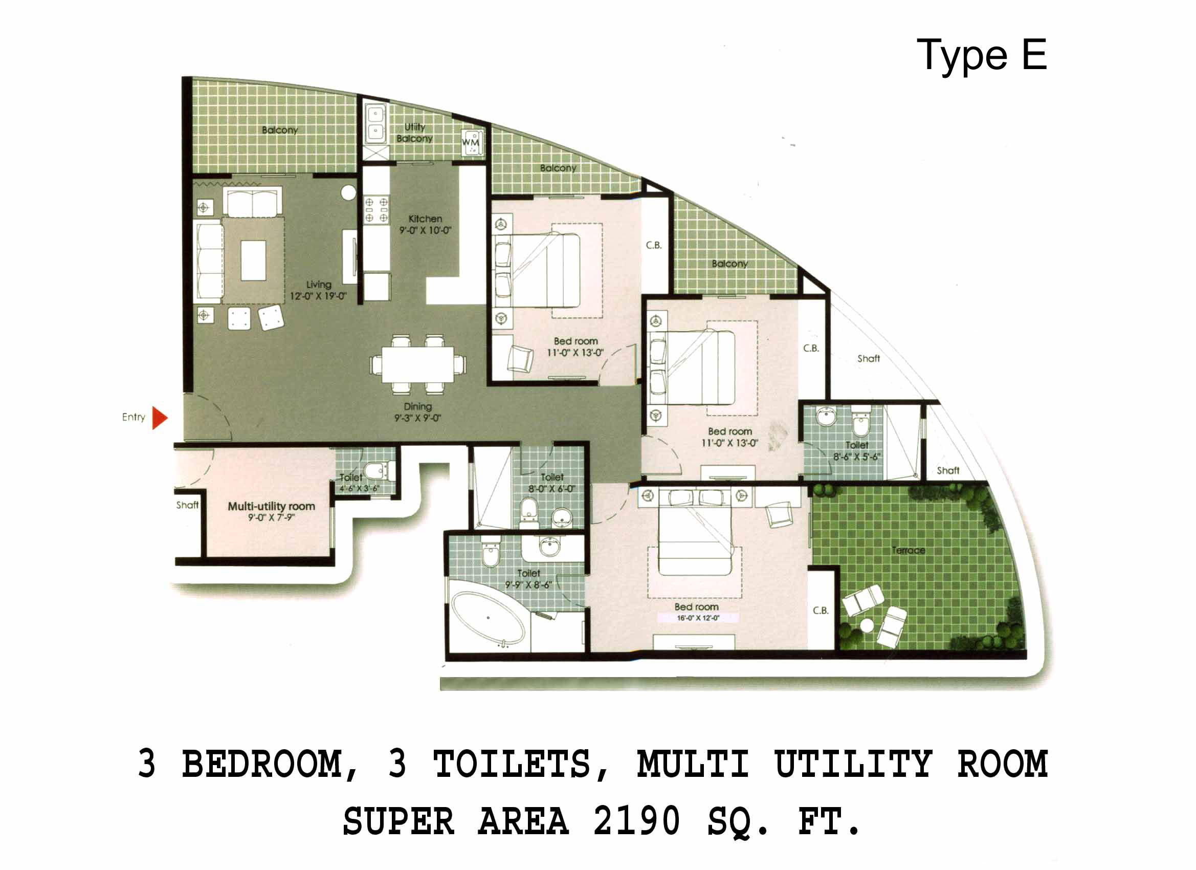 3BR+3T+Multiutility Room | 2190 Sq-Ft | 1,20,45,000 | View Plan |