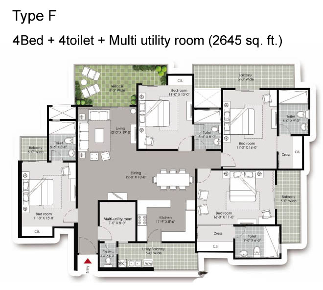 4BR+4T+Multiutility Room | 2645 Sq-Ft | 1,45,47,500 | View Plan |