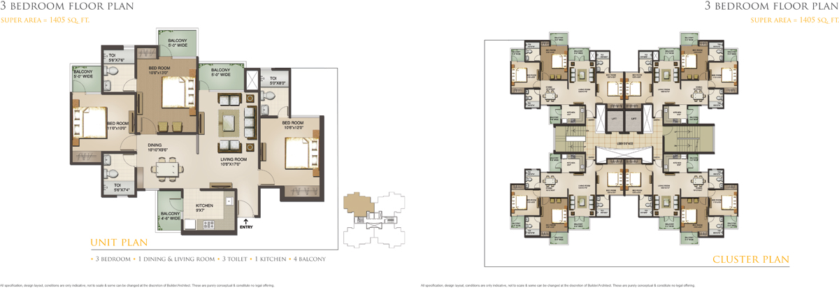 3 bhk + 3T | 1405 Sq. ft. | 73,06,000 | View Plan |