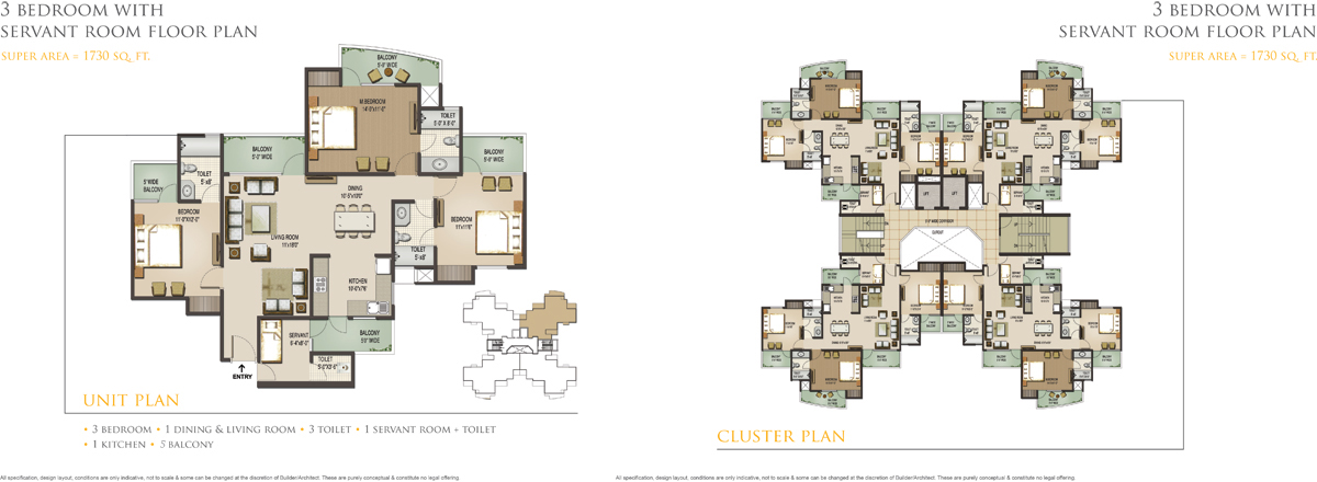 3 bhk + 3T | 1730 Sq. ft. | 89,96,000 | View Plan |