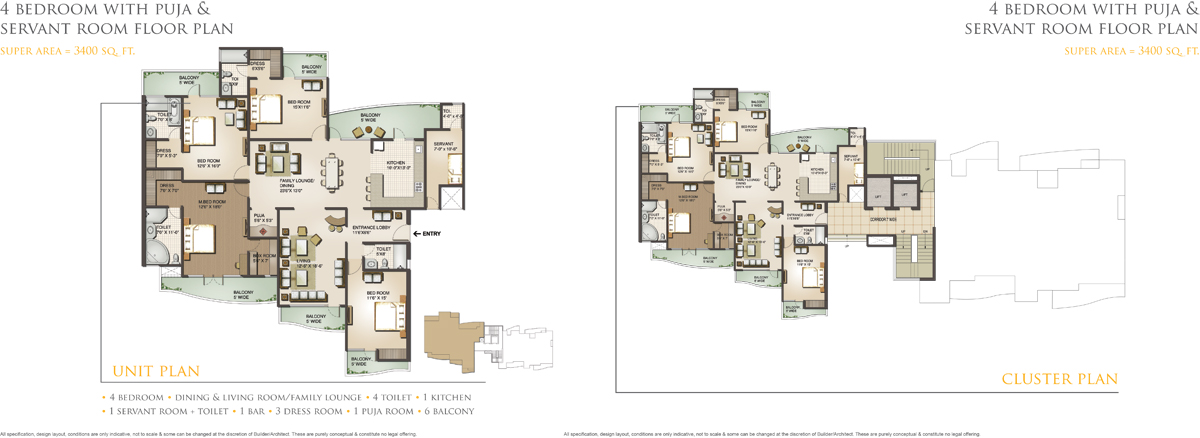 4 bhk + 4T | 3400 Sq. ft. | 1,76,80,000 | View Plan |